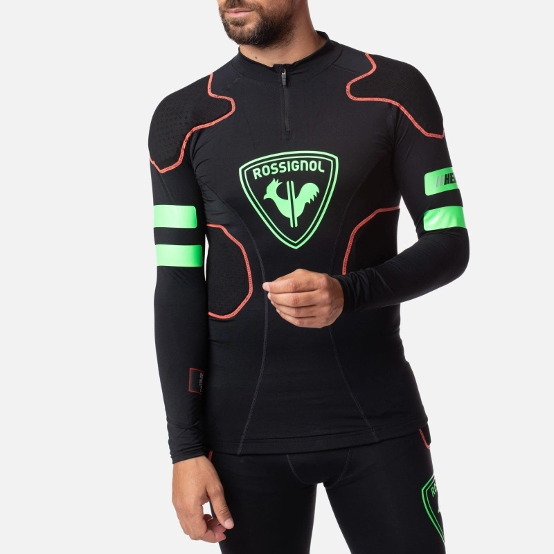 Que vous soyez skieur ou snowboardeur, vous apprécierez le sous-vêtement Protection de Rossignol. Ce haut pour homme a été développé en partenariat avec le centre hospitalier de Grenoble pour vous offrir des performances élevées, intégrant le système Shock Protection. Ce vêtement dispose d’un rembourrage fin au niveau des principales zones d’impact : épaules, buste et colonne vertébrale. Vous serez ainsi protégé en cas de choc léger à moyen et disposerez d’une très grande liberté de mouvement.